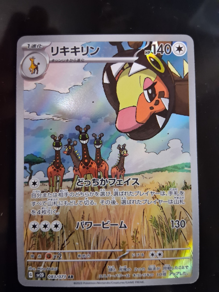 The Farigiraf 083/071 AR Full Art Japanese Pokemon Card from the Scarlet & Violet - Clay Burst set is a rare and highly sought-after collectable for fans of the Pokémon TCG.