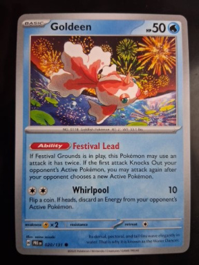 Crafted by The Pokémon Company, this card is produced with quality card stock material and adheres to the standard card size for seamless integration into your collection. While not autographed, the Goldeen card is a common piece that represents the enduring legacy of the Pokémon TCG.