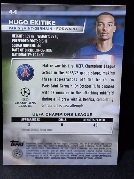 Hugo Ekitike - #44 - PSG - Stadium Club Chrome - 2024/25