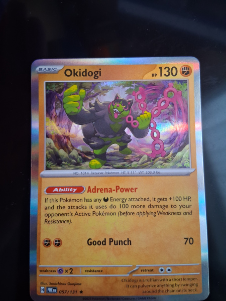 Explore the world of Pokémon TCG with the elusive 057/131 Okidogi, a Holo Rare card from the thrilling Prismatic Evolutions set. This collectible card is a must-have for both seasoned collectors and enthusiasts, featuring the iconic, animated character in stunning holographic detail.
